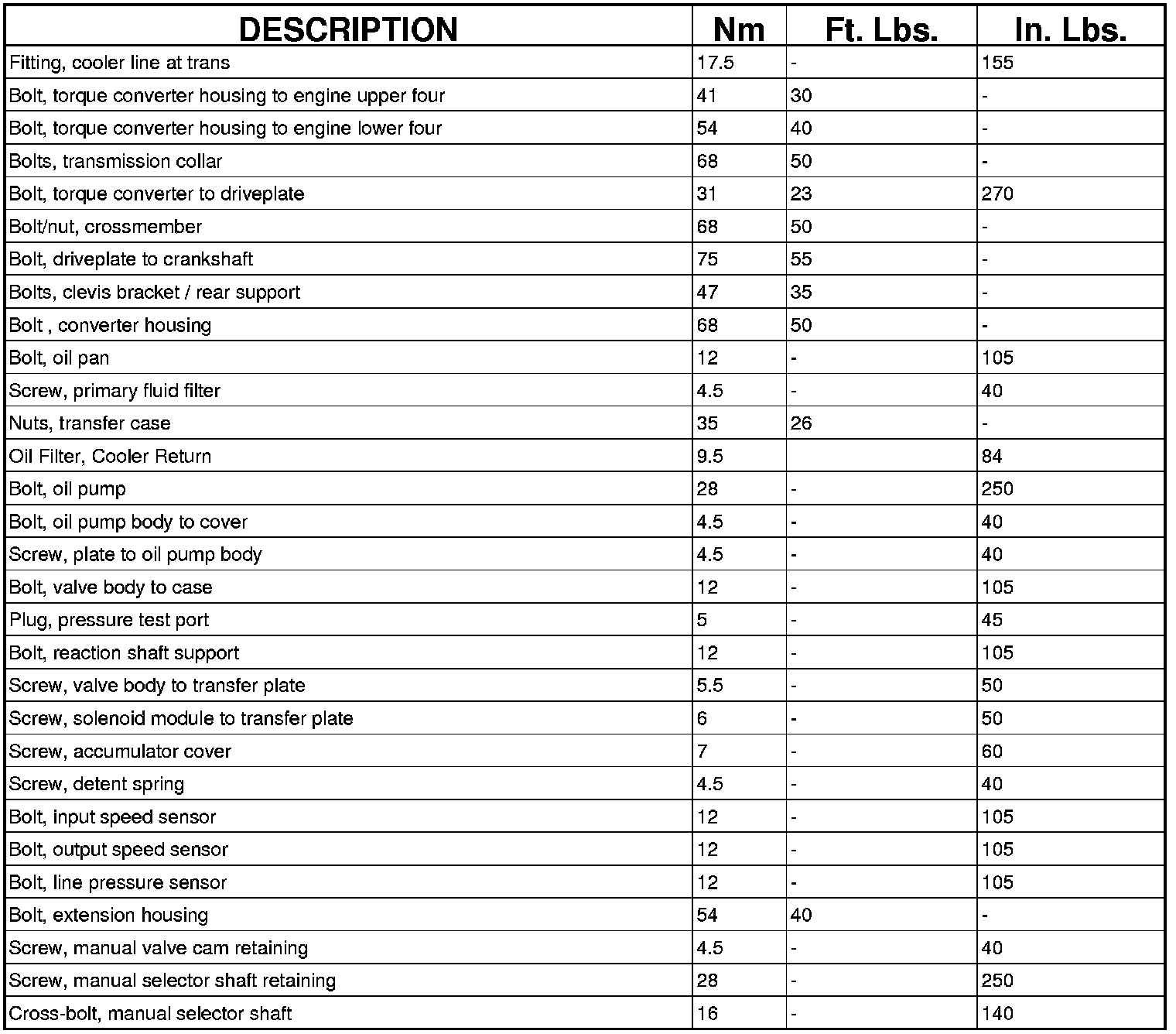 TORQUE SPECIFICATIONS