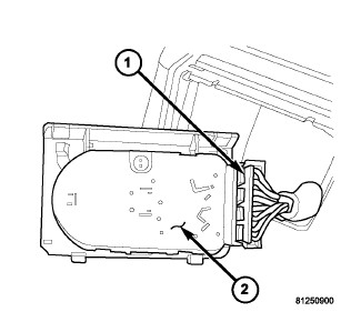 1. Position the rear A/C-heater control (2) near the center floor console.