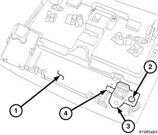 3. Remove the screw (2) that secures the infrared sensor (3) to the back of the overhead console and remove the sensor.