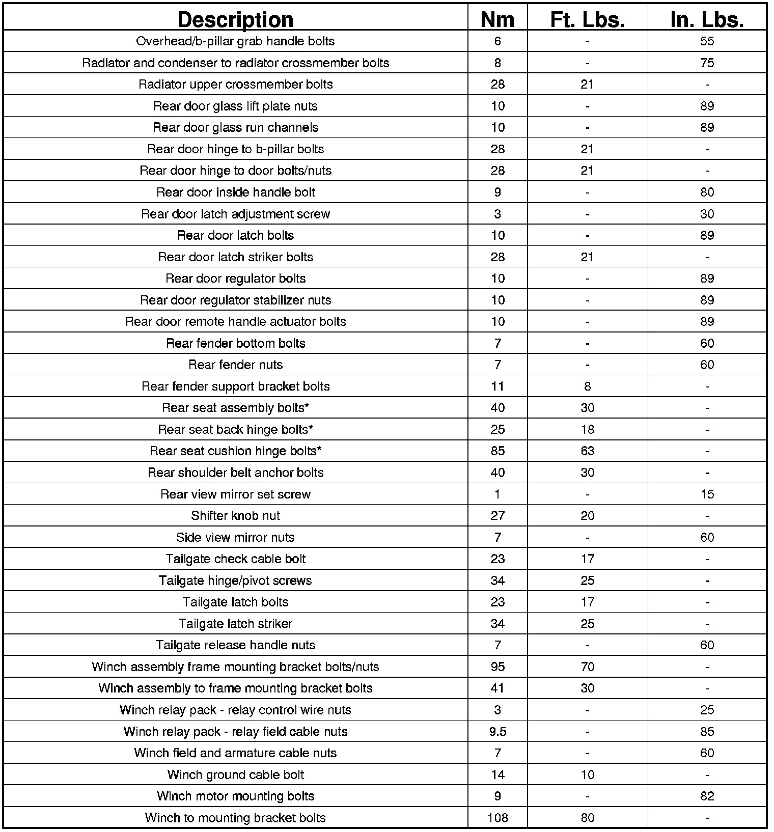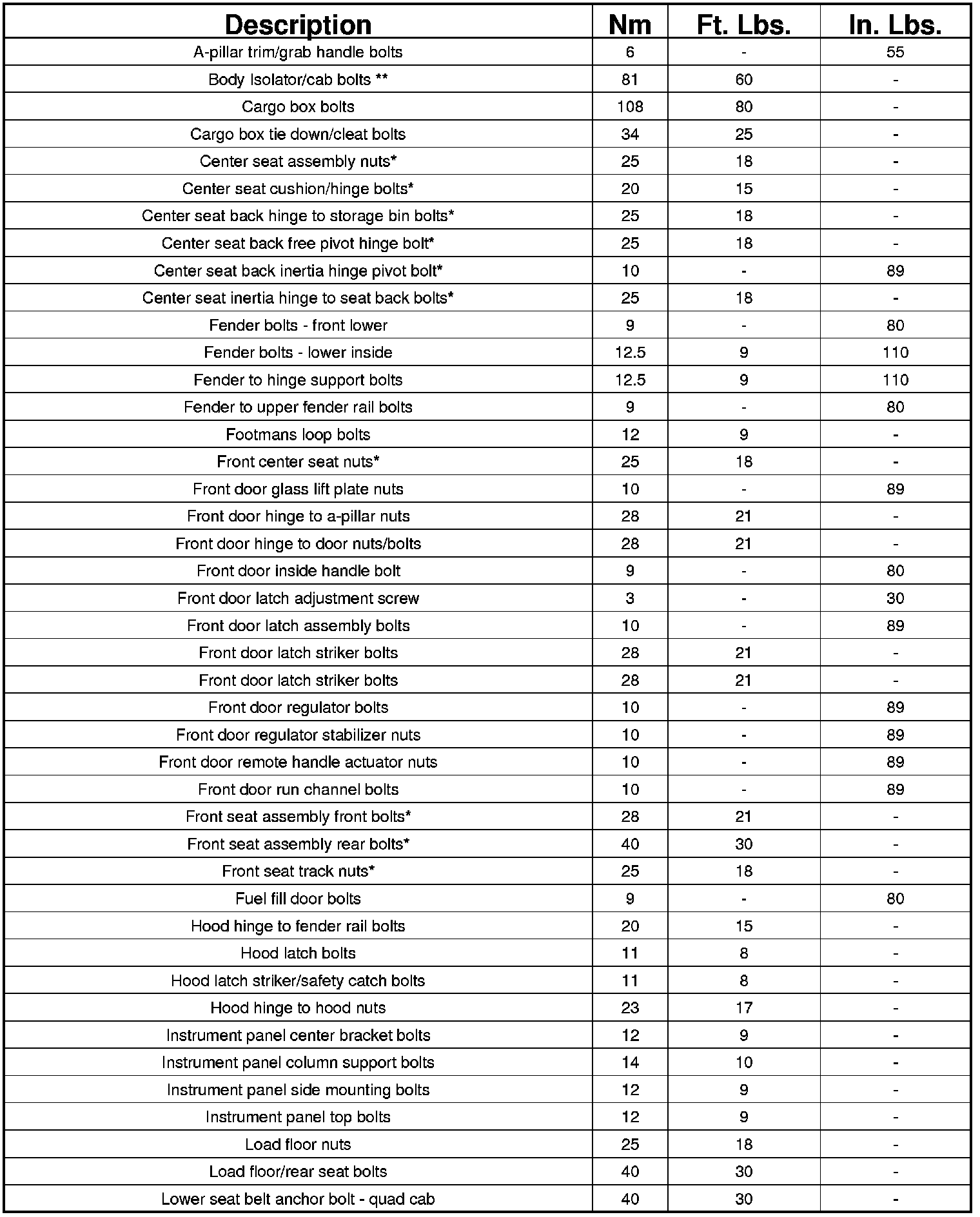 NOTE: * Seat fasteners should be discarded and replaced with new fasteners during assembly.