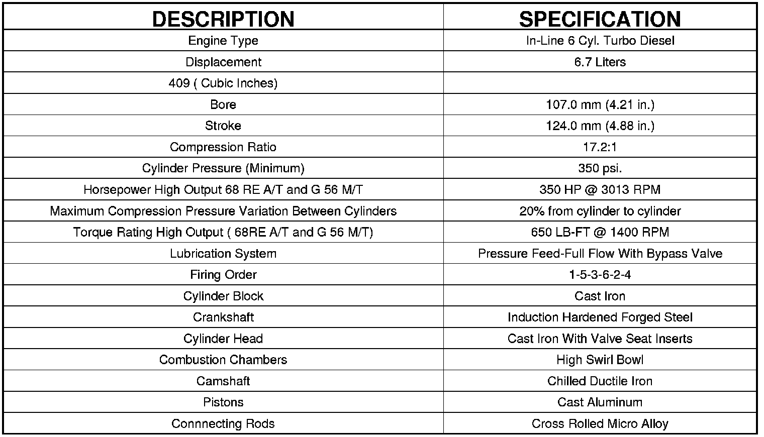 Engine Specifications