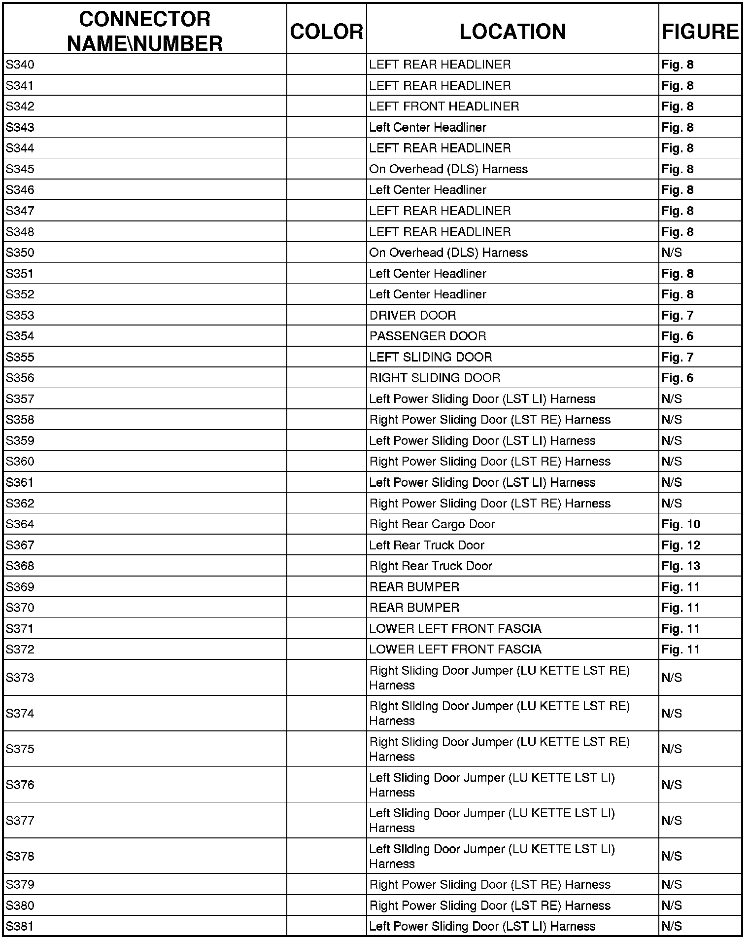 If a link on the index chart to a figure is not provided, that means that the splice and/or figure in question does NOT apply to the vehicle model selected.