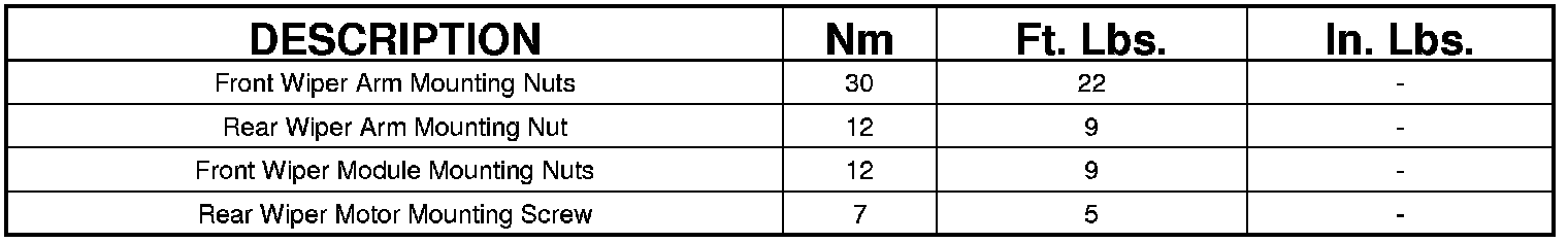 TORQUE SPECIFICATIONS