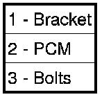 3. Remove the 4 bolts (3) holding the PCM (2) to the bracket (1) and remove the PCM (2) from the vehicle.