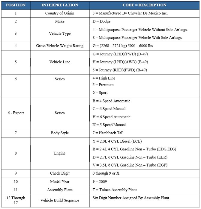 To protect the consumer from theft and possible fraud the manufacturer is required to include a Check Digit at the ninth position of the Vehicle Identification Number. The check digit is used by the manufacturer and government agencies to verify the authenticity of the vehicle and official documentation. The formula to use the check digit is not released to the general public.