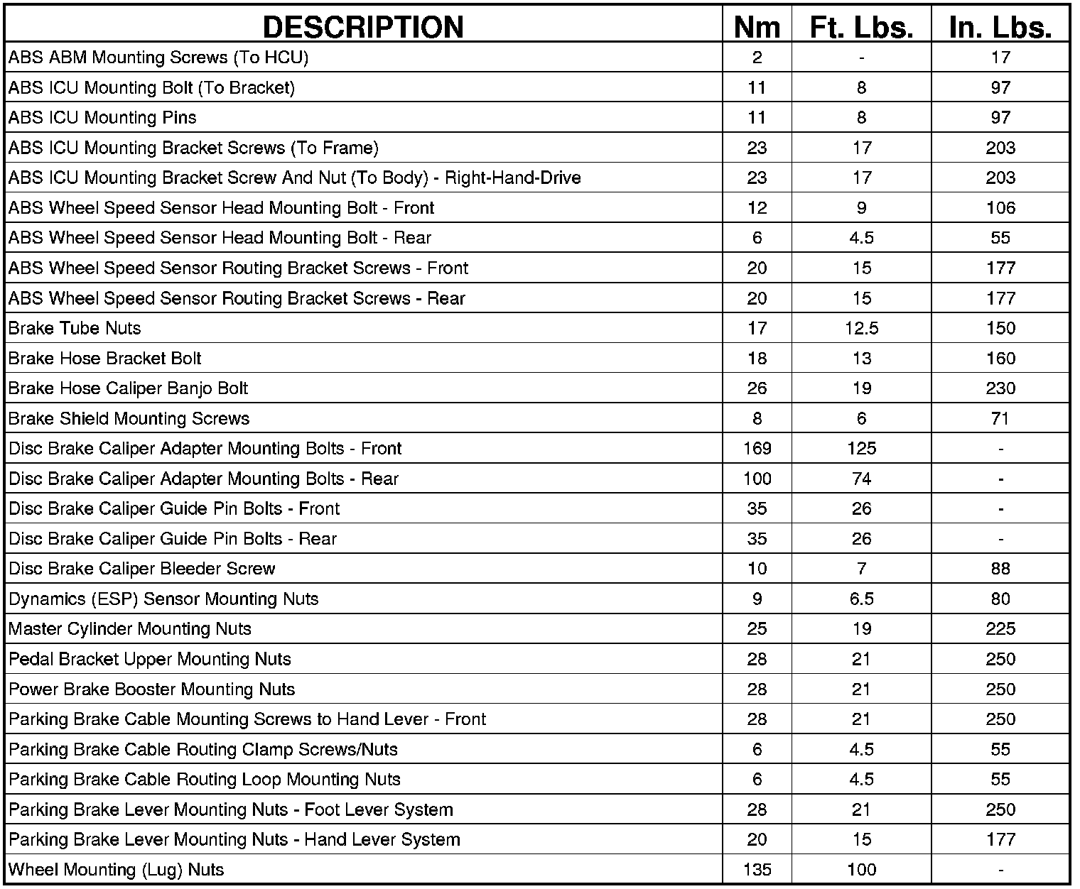 BRAKE FASTENER TORQUE