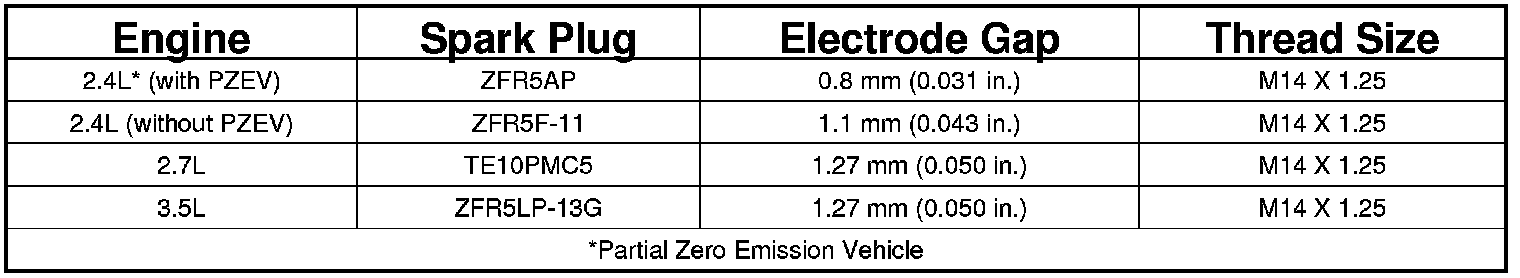 Spark Plug Specifications
