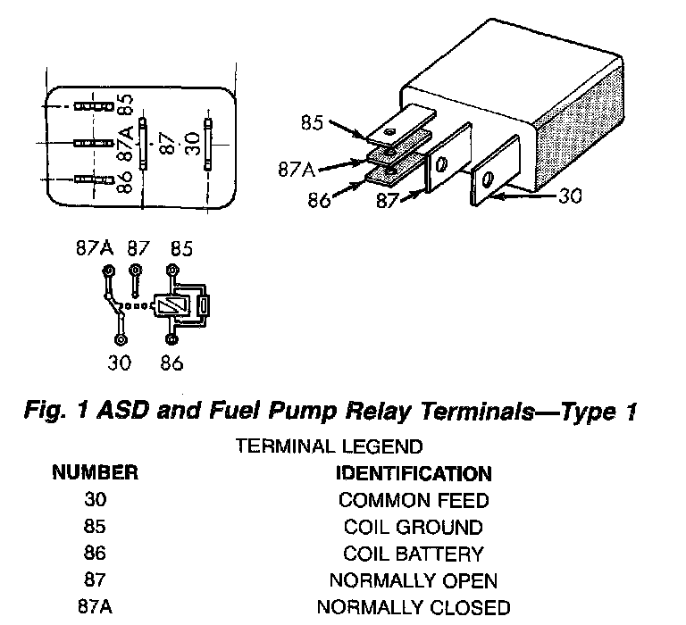 Fig.1 ASD And Fuel Pump Relay Terminals-Type 1: