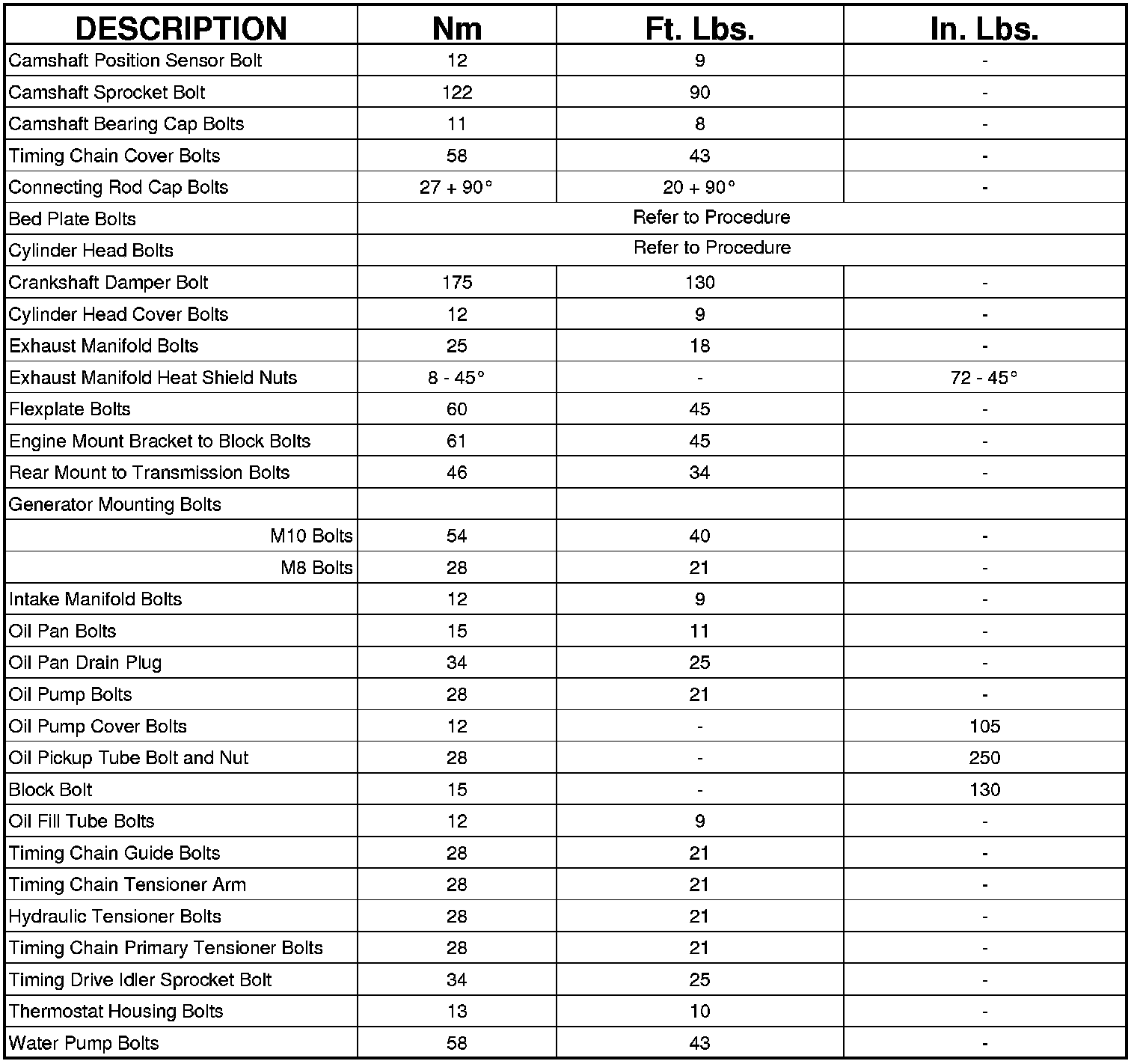 Engine Torque Specifications