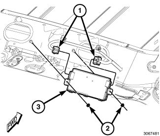 1. Position the RF Hub (3) to the vehicle and install the retainers (2).