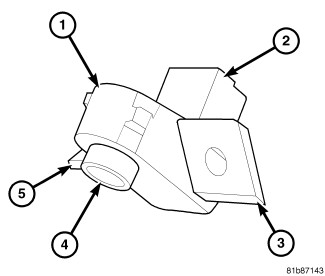The infrared temperature sensor (1) consists of an infrared transducer concealed behind a clear lens (4) located in a molded plastic housing with an integral wire connector receptacle (2) and mounting and alignment tabs (3 and 5).