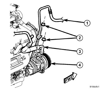 NOTE: Replacement of the refrigerant line O-ring seals and gaskets is required anytime a refrigerant line is disconnected. Failure to replace the rubber O-ring seals and metal gaskets could result in a refrigerant system leak.