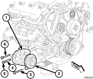 7. Tighten each of the compressor fasteners to 28 Nm (21 ft. lbs.) using the following sequence: