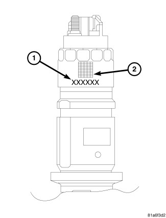 Each fuel injector has a six-digit alphanumeric correction code. The correction code is printed on the intake side of the fuel injector (1) and is used to identify injector calibration. When replacing any fuel injectors, this code must be entered into the vehicles Powertrain Control Module (PCM) using a diagnostic scan tool. In addition, if a new PCM is installed, use a diagnostic scan tool to program all six of the injector codes from the original fuel injectors into the new PCM.