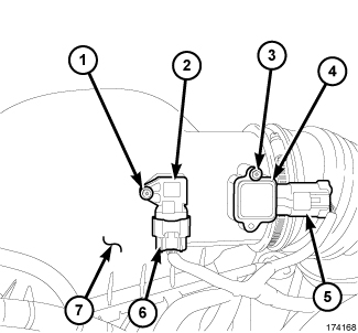 2. Install the Mass Air Flow (MAF) sensor (4) into top of the air cleaner (7). Tighten screw (3) to 1 Nm (9 in. lbs.).
