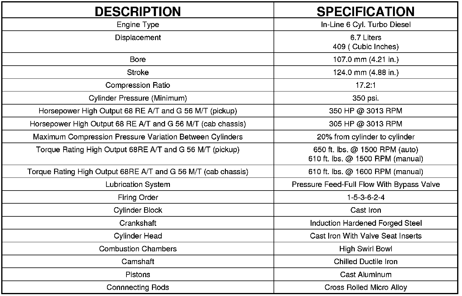 Engine Specifications