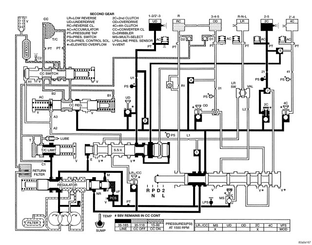 Figure 8 - HYDRAULIC FLOW IN SECOND GEAR
