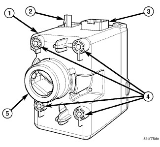 The WIN housing is constructed of molded black plastic and includes four integral mounting bosses (4) , which are secured to the instrument panel structure with screws. Two connector receptacles are integral to the back of the switch housing. One (3) connects the WIN to the vehicle electrical system through a dedicated takeout and connector of the instrument panel wire harness. The other (2) is a dedicated connector for the coaxial cable input from the optional remote start system external antenna module.