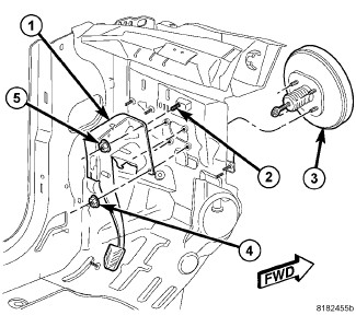3. Install the brake pedal assembly (1) Brake and/or Accelerator Pedals - Installation.