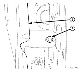 2. From inside engine compartment, start the center upper rail bolt. Install all the fasteners (1) attaching fender to upper rail and tighten.