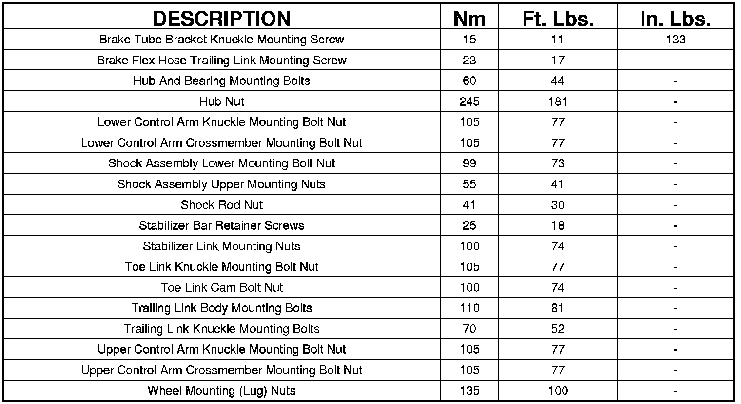 Rear Suspension Specifications