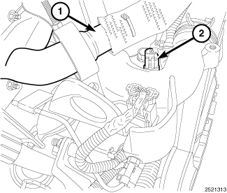 3. Remove the upper EGR tube (2).Exhaust Gas Recirculation (EGR) Tube - Removal