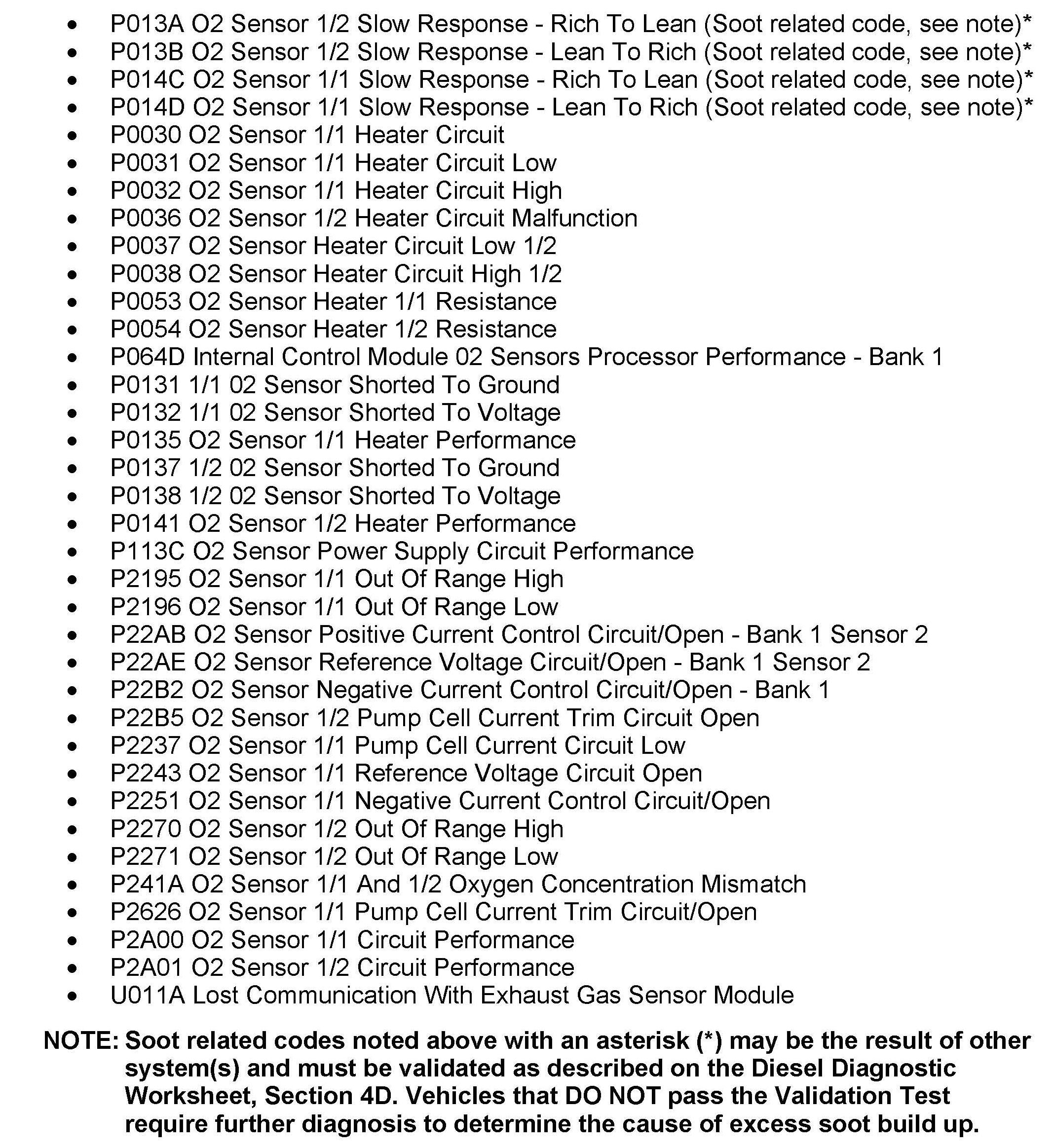 Validation Test (Section 4D of the Diesel Diagnostic Worksheet) performed to ensure excess soot is not causing the DTC(s). IF excess soot is found during Aftertreatment Validation Test, perform appropriate repairs to eliminate soot accumulation. The repair procedure below should be performed regardless of outcome or repairs performed for other issues.