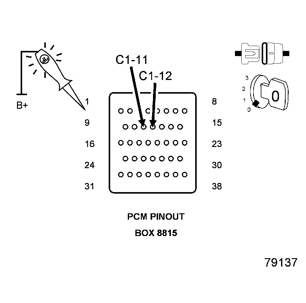 2. Using a 12 Volt test light connected to ground, check the PCM Fused Ignition Switch circuits.