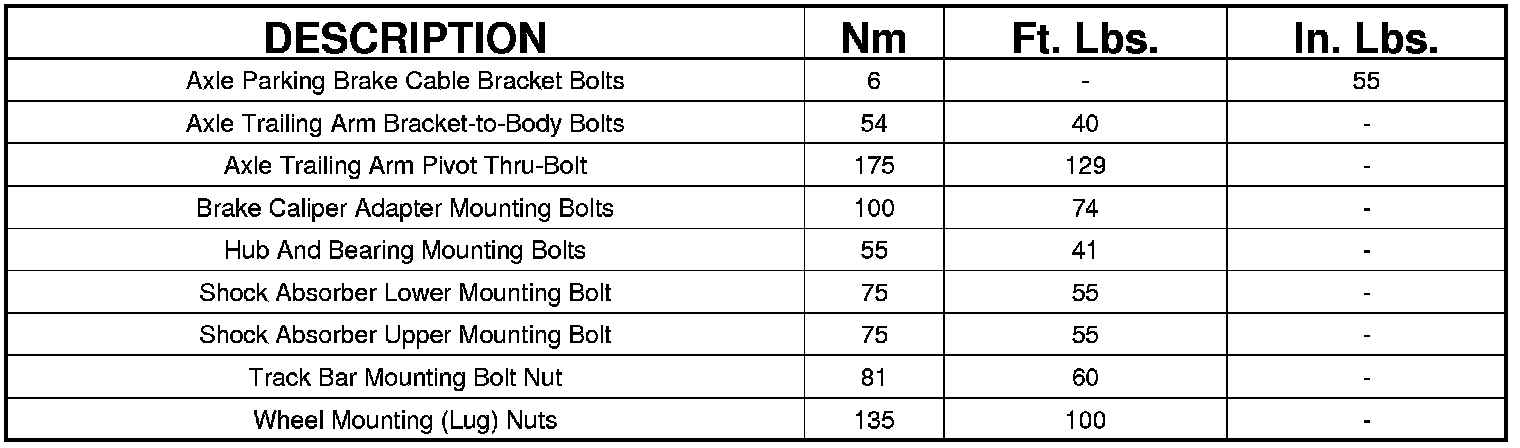 Rear Suspension Specifications