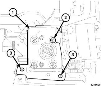 7. Install the three fasteners (3) securing the WIN bracket (1) to the instrument panel cover.