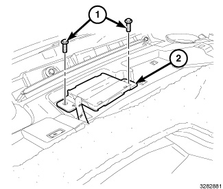 3. Place the antenna (2) into the cavity, onto the locating pins and install the mounting screws (1).