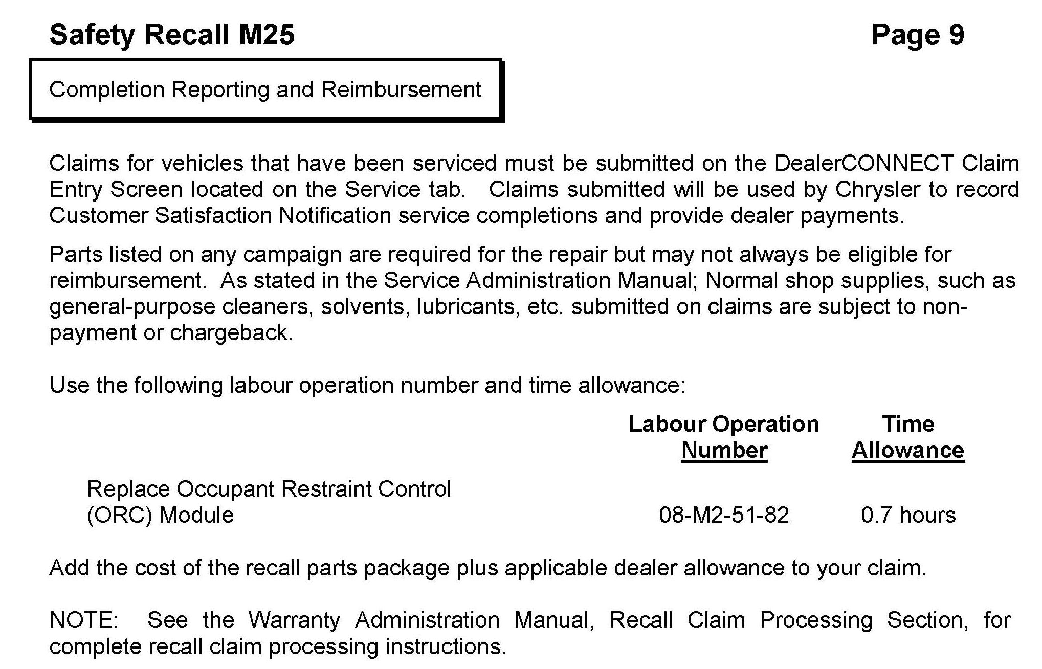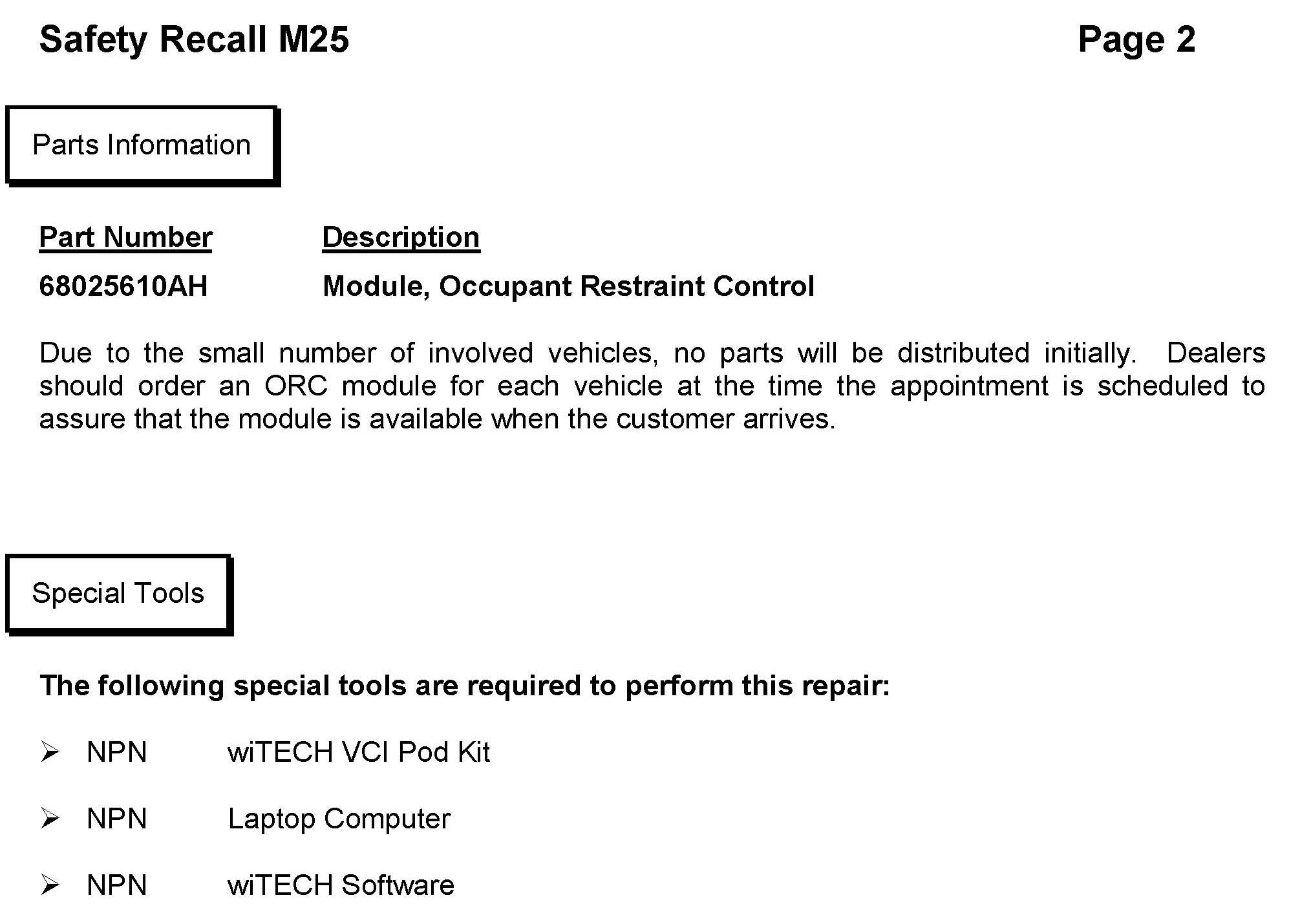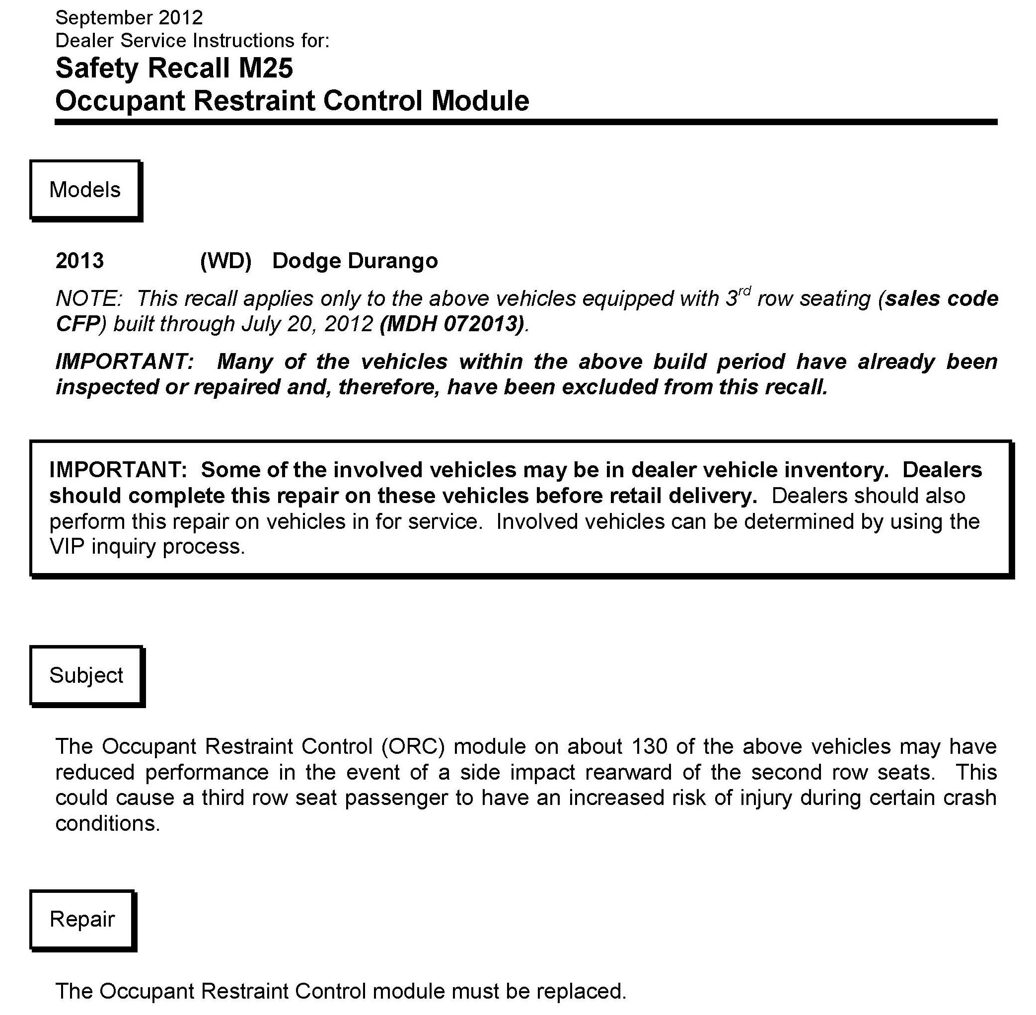 Recall - Occupant Restraint Control Module Replacement