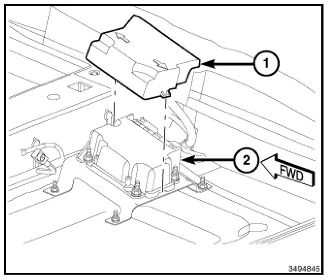 1. Move the left front seat to the most forward and most raised position for easiest access to the Electronic Pedestrian Protection Module (EPPM) (2).