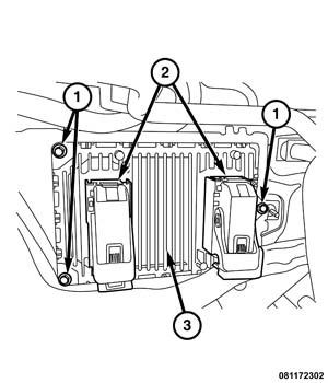3. Remove the three PCM mounting bolts (1) and remove the PCM from vehicle.