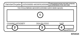 6. Type the necessary information on the "Authorized Modification Label" (p/n 04275086AB) and attach near the VECI label (See SECTION 3 - AUTHORIZED MODIFICATION LABEL for details).