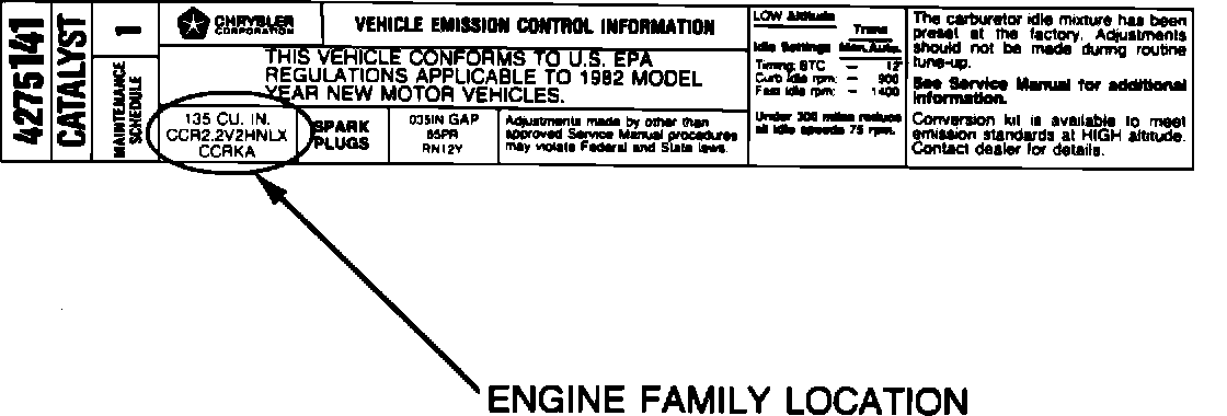 2. Inspect the label and verify that the engine family is CCR2.2V2HNLX (Figure 1). Only cars with this engine family are involved in the recall.