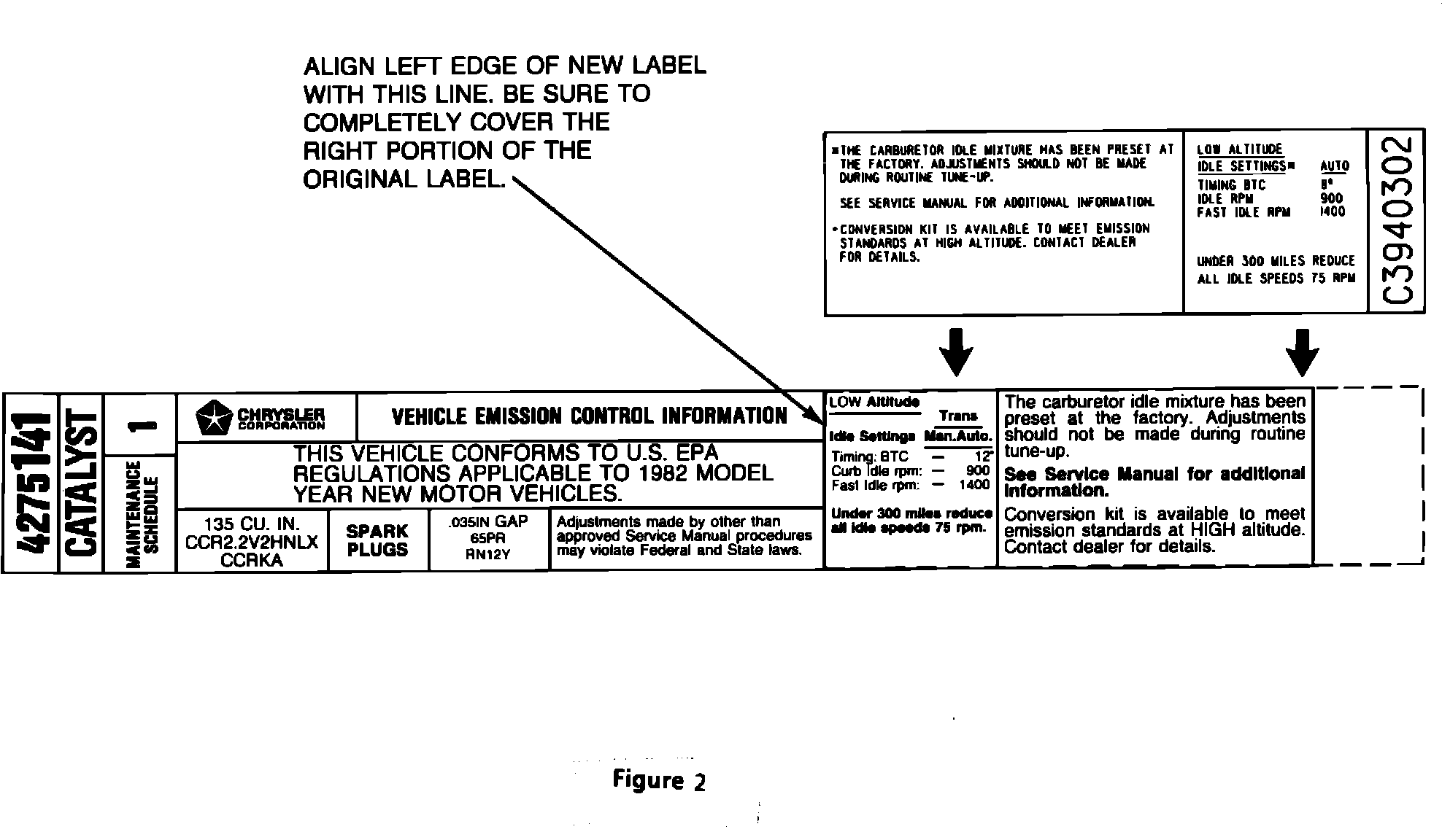 4. Wipe existing VECI label clean. Affix the appropriate owner supplied new label to cover the right portion of the original label as shown in figure 2.