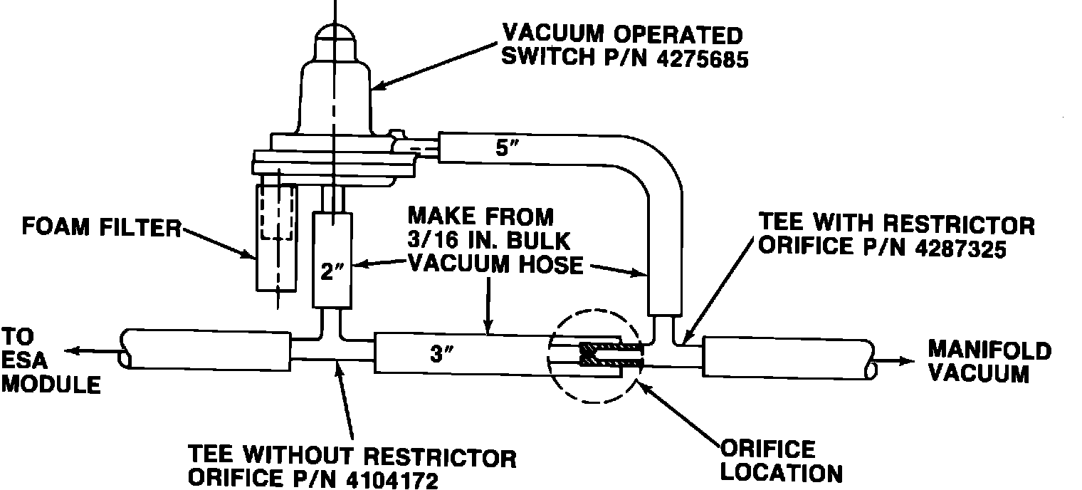 4. Install vacuum operated switch and hose assembly in ESA vacuum hose being careful to install the "tee" with restrictor orifice toward the ESA module (Figure 1).