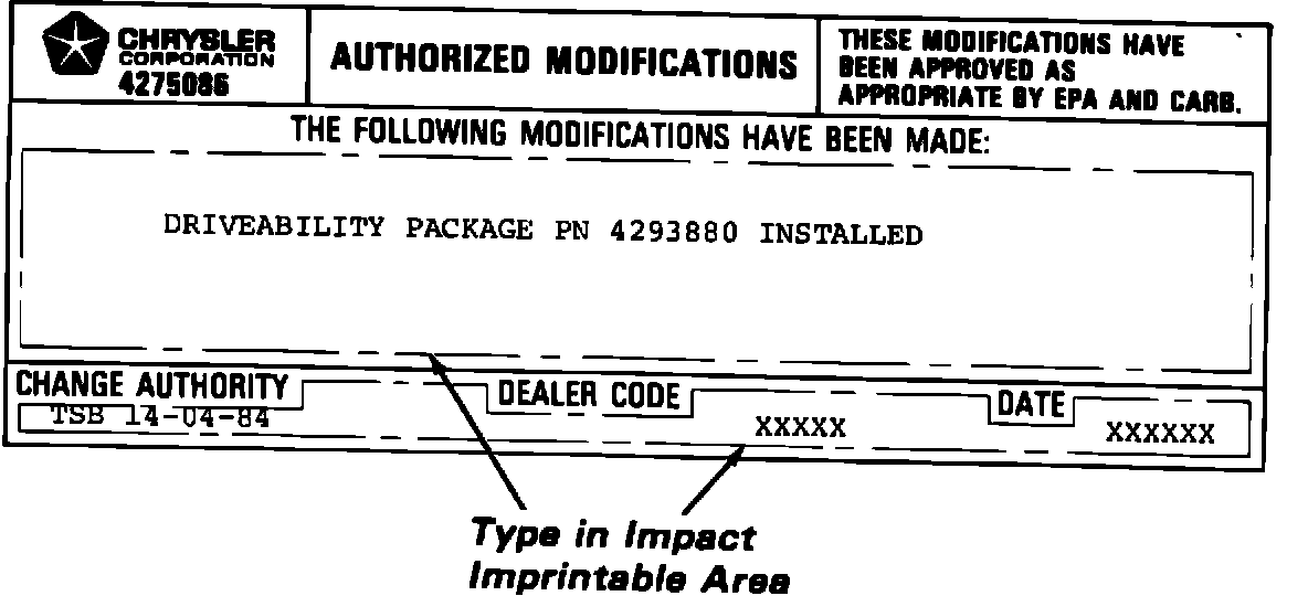 5. Type the following information on the Authorized Modification Label PN 4275076 (Figure 2).