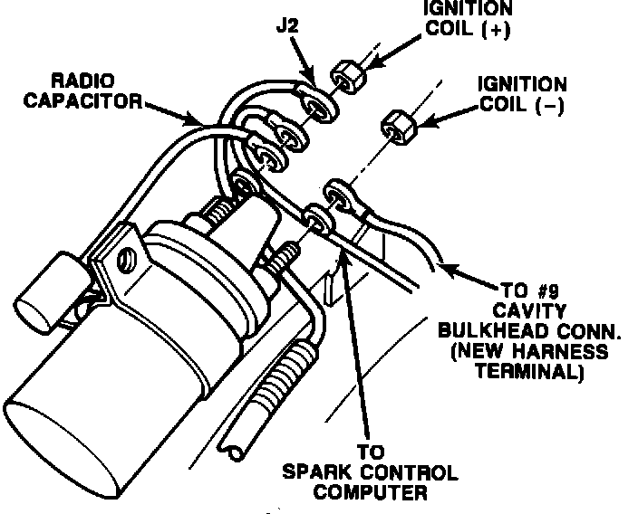 4. Install the eyelet terminal of the overlay harness to the negative terminal of the ignition coil (Figure 1-B).