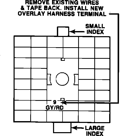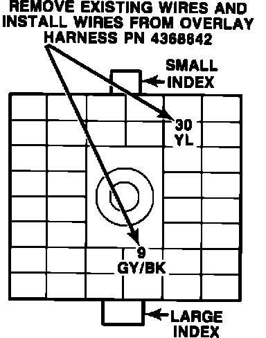 9A. Insert the two bare terminals of the overlay harness, PN 4368597, into the 2 x 5 wedge connector as follows (Figure 3-D):