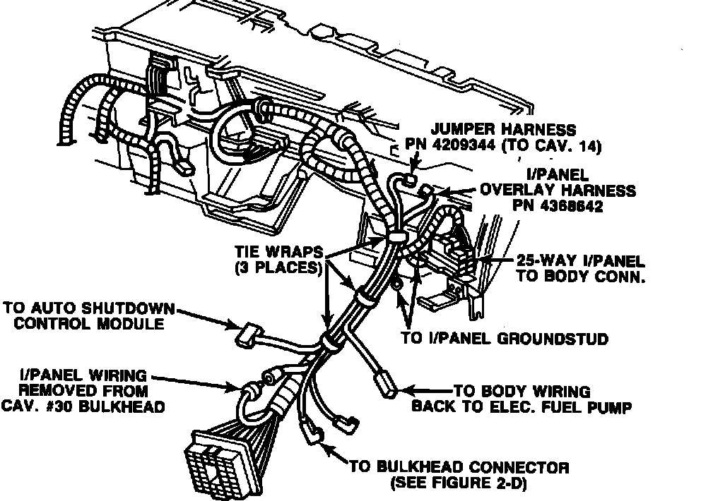FIGURE 3-A - FUEL PUMP OVERLAY HARNESS ROUTING THROUGH BODY: