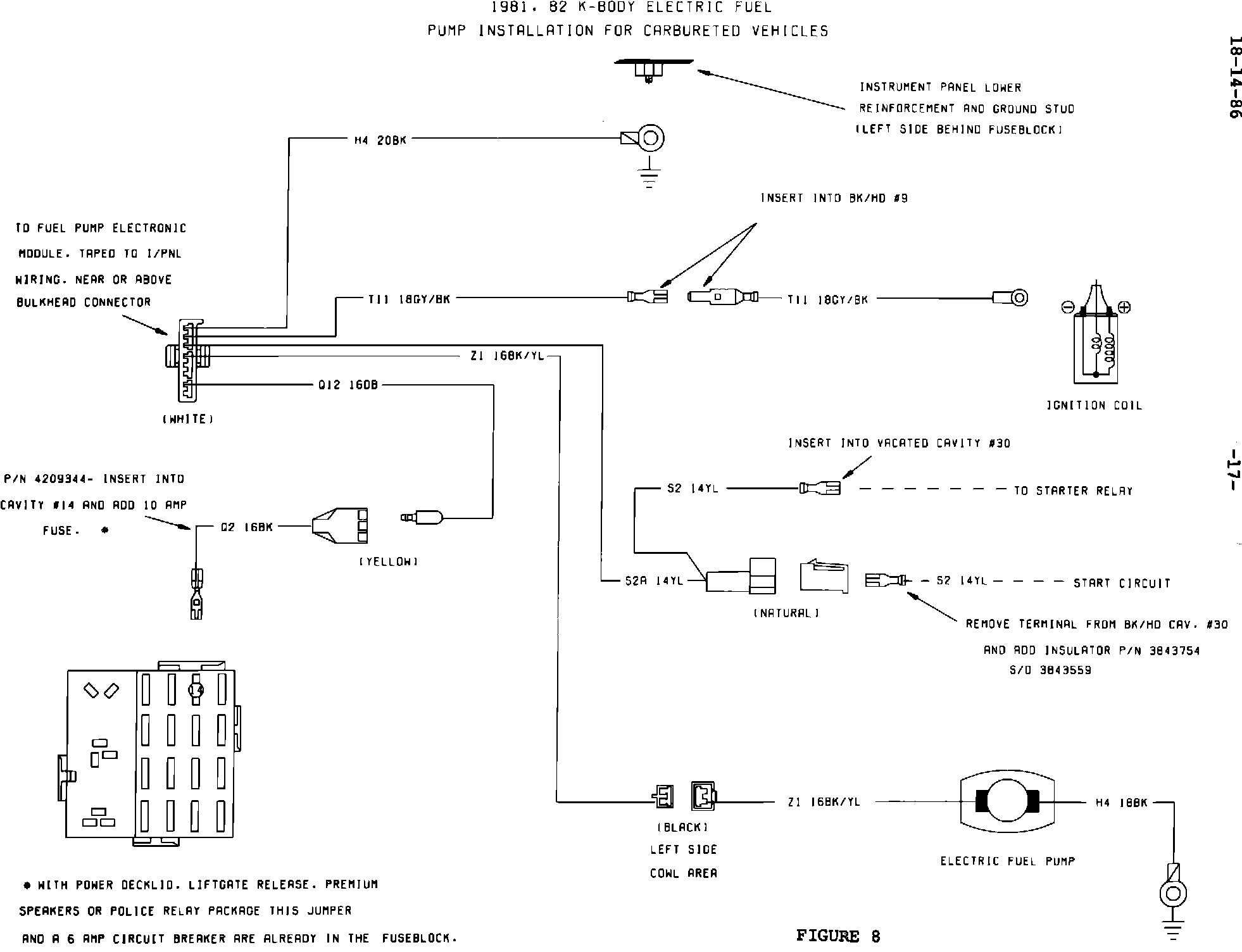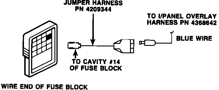 NOTE: SOME 1981-1982 VEHICLES MAY ALREADY BE EQUIPPED WITH JUMPER HARNESS, PN 4209344, IN CAVITY #14 OF THE FUSE BLOCK. IF SO, DISCARD JUMPER HARNESS, PN 4209344, SUPPLIED IN KIT.
