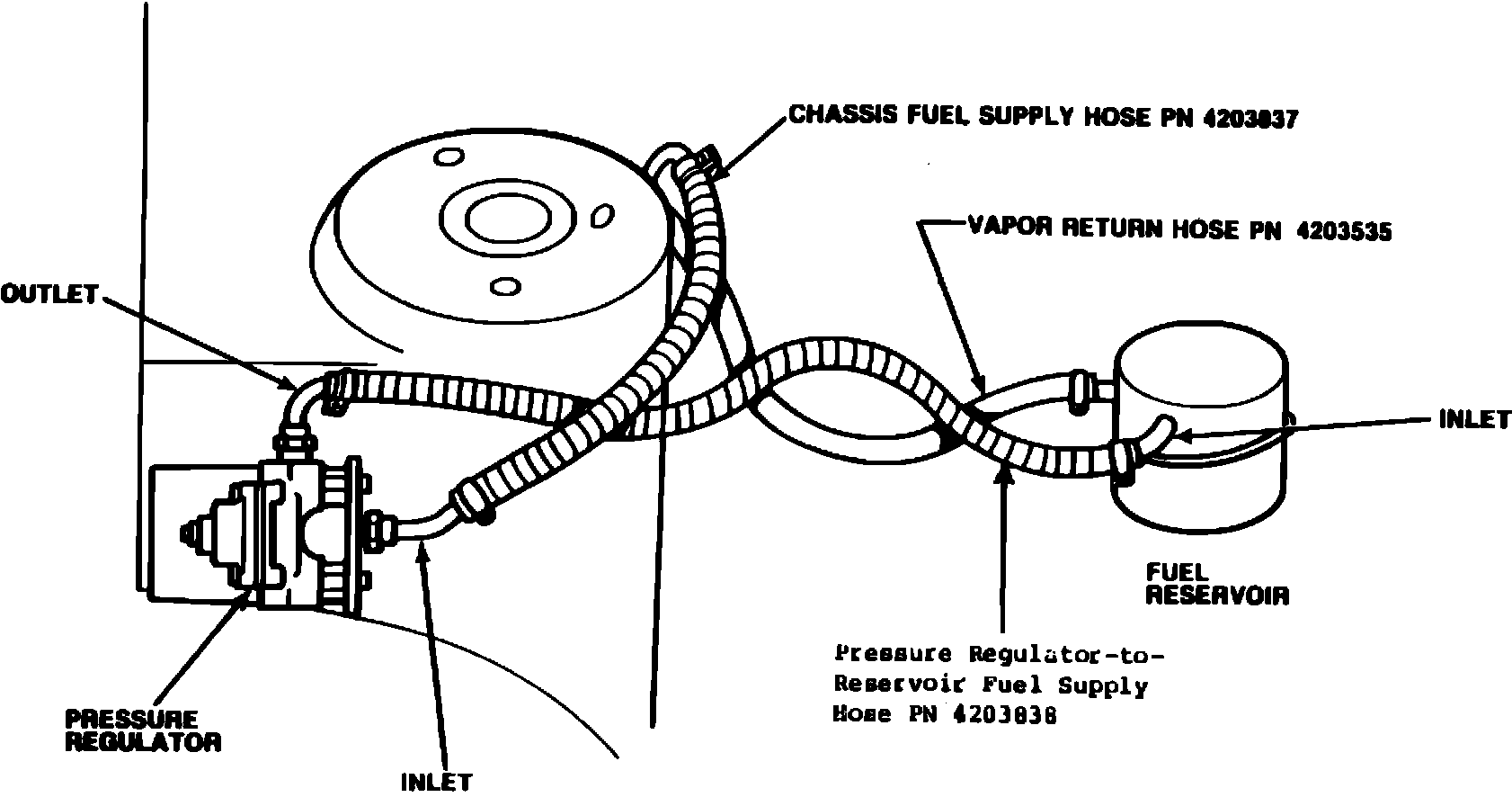FIGURE 6 - FUEL RESERVOIR AND PRESSURE REGULATOR CONNECTIONS: