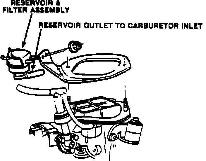 8. Install the fuel reservoir bracket and gasket assembly, PN 4306932 (Figure 7-B), over the carburetor air horn studs. Reinstall the air cleaner.