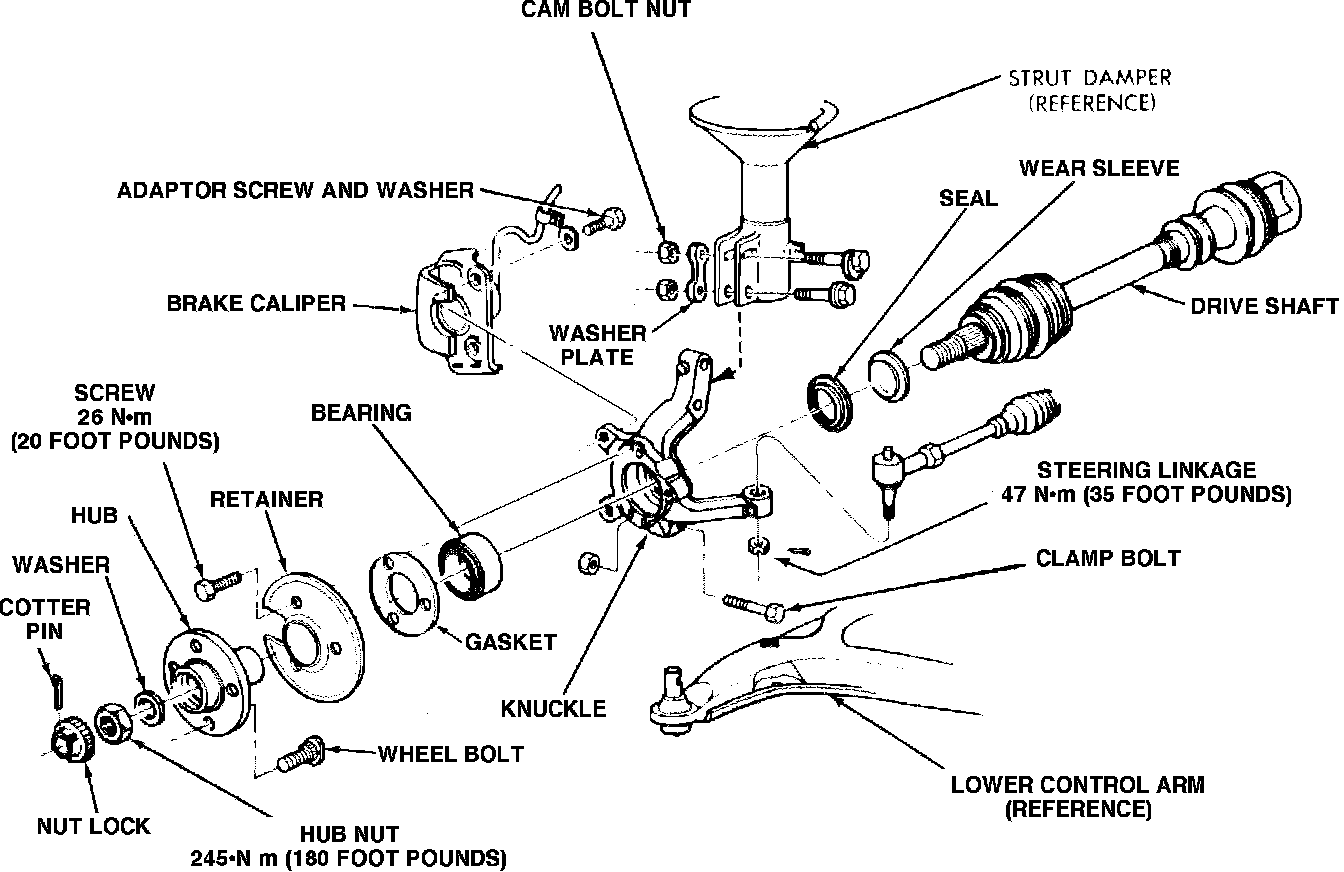 2. Loosen hub nut with brakes applied. The hub and driveshaft are splined together through the knuckle (Bearing) and retained by hub nut.