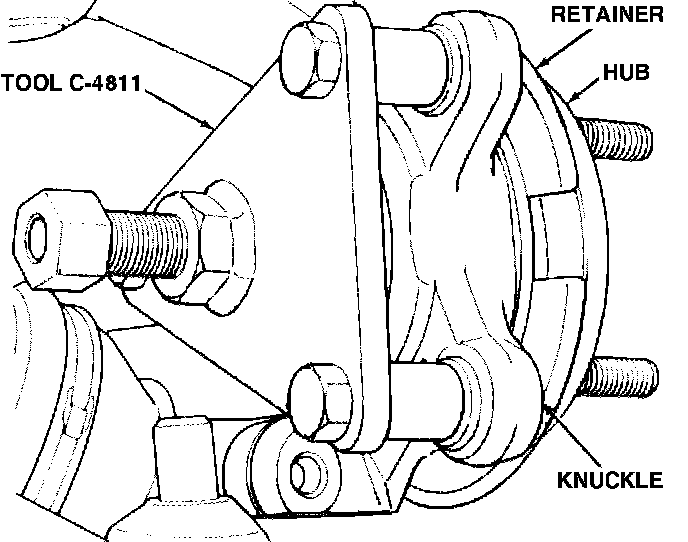5. Press bearing out of knuckle using tool No. C-4811 or equivalent.