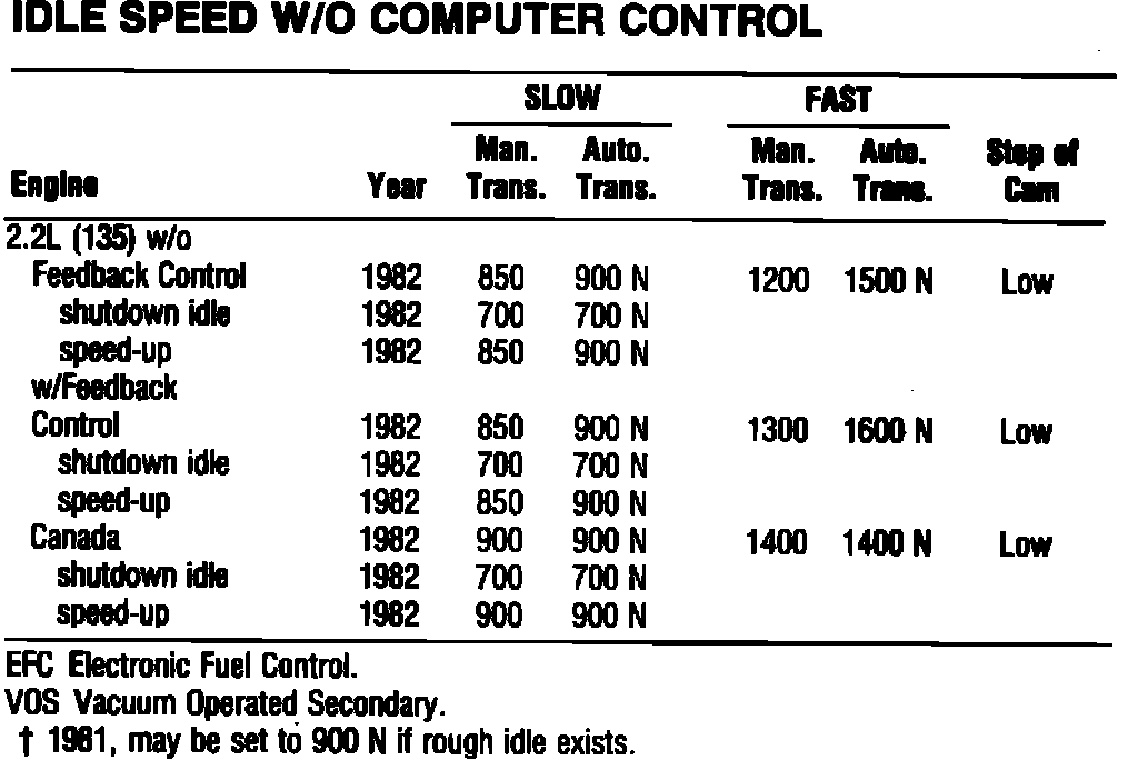 Idle Speed: Specifications