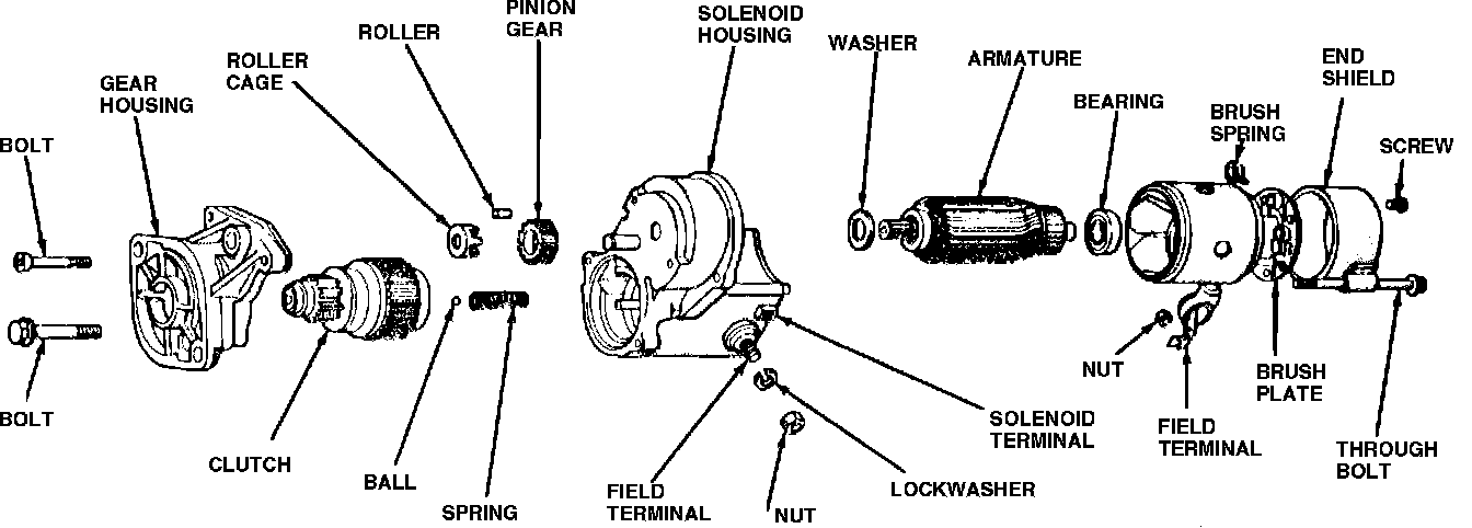 Nippondenso starters are either direct drive or reduction gear types. The direct drive starter has an overrunning clutch type starter drive and a solenoid switch is mounted on the starter motor. The structure of the reduction gear type starter differs from that of the direct drive type, but the electrical wiring is the same for both types.