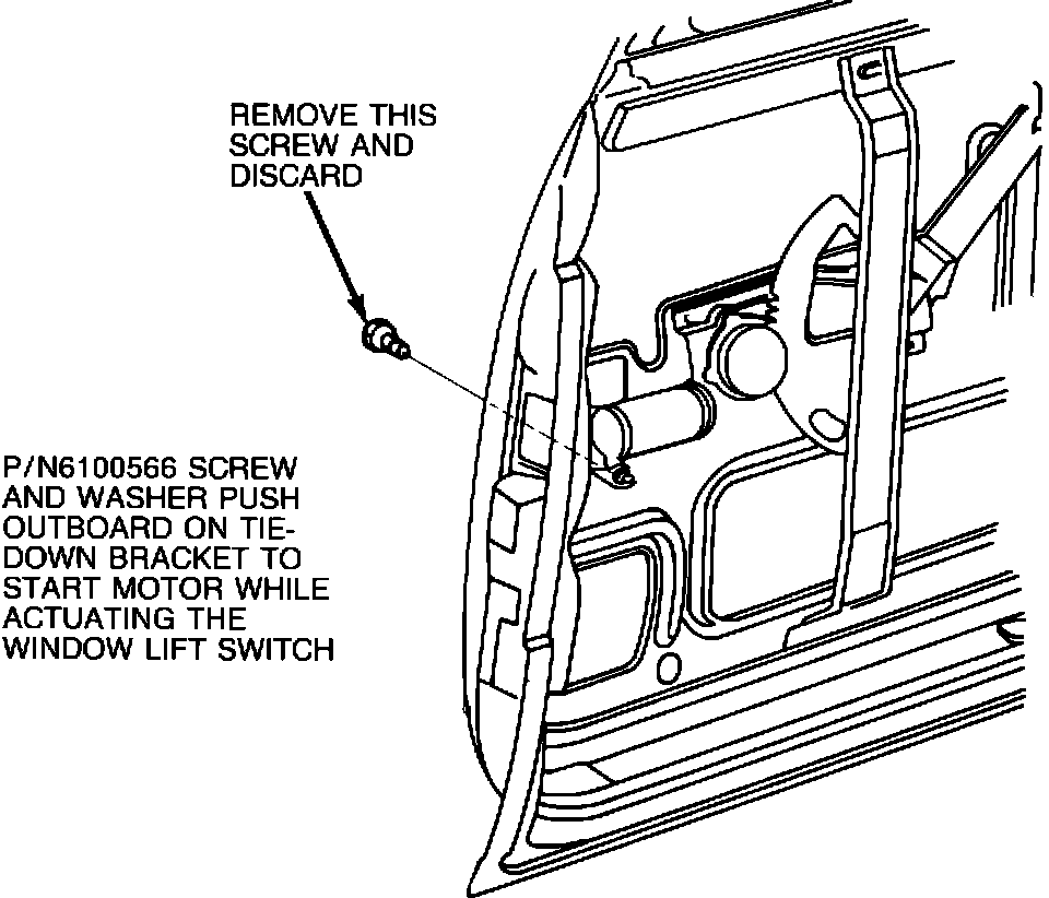 1. Remove Screw and Washer, PN 6100566, and discard (Figure 1). This fastener will be left off to give the electric window lift motor more freedom to float with inner panel deflections.